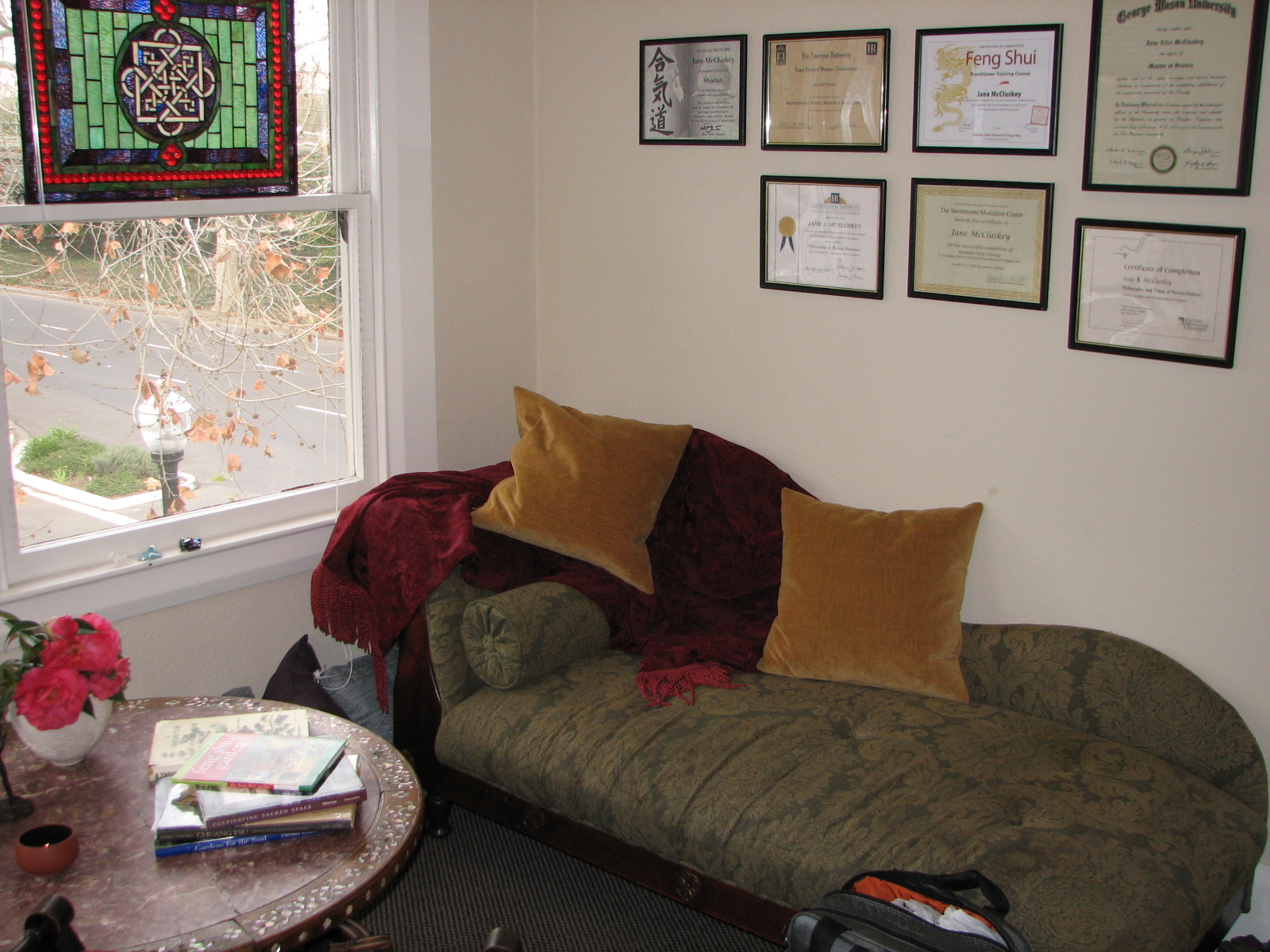 A Year of Feng Shui: $2000. Includes personal chart for all home or office occupants, initial consultation, all charts listed under home/office assessment, 3 space and clutter clearing visits, organization and planning, 1 garden design based on home plan, 2 visits of just labor, 2 follow up visits for progress, coaching, and a written report bound for recommendations, planning and progress updates.